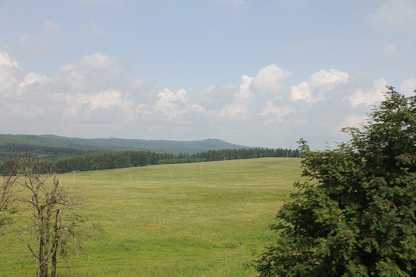 Zwischen den Haltestellen Schmiedeberg-Markt und Kupferberg-Schacht passierte unser bunter und mit lauter netten Menschen besetzter Zug nun die "Wilde Henne", den mit 875 Metern über dem Meeresspiegel höchstgelegensten Punkt dieser 57,7 km langen Gebirgsstrecke von Weipert nach Komotau.
